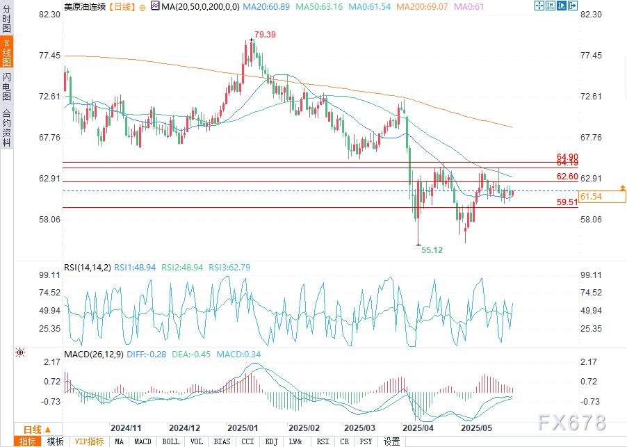 周三(5月28日)欧盘时段,WTI原油期货价格维持在窄幅区间内,市场参与者在即将到来的欧佩克+会议可能带来的催化剂和不断变化的供应消息前,暂未建立重大头寸。价格在关键阻力位附近显示出波幅收窄迹象,表明突破即将发生。
