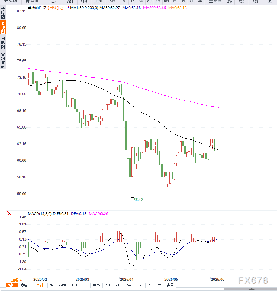 从技术面来看,美原油(WTI)日线图显示价格正运行于短期上升通道内,支撑位位于62美元附近,而上方阻力集中在64.50美元区域。近几个交易日,WTI在60日均线处获得支撑,并成功突破20日均线压制,显示短期多头动能逐步增强。