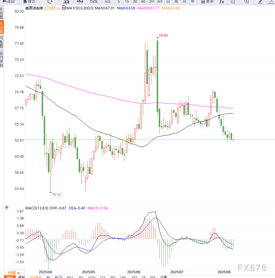 当前油市处于多空力量拉锯阶段。一方面,美国库存上升及产量增长预期削弱了价格支撑;另一方面,地缘政治的不确定性仍为油价提供底部支撑。短期来看,需密切关注EIA库存数据与美俄会晤结果,这将直接影响市场情绪与价格波动区间。